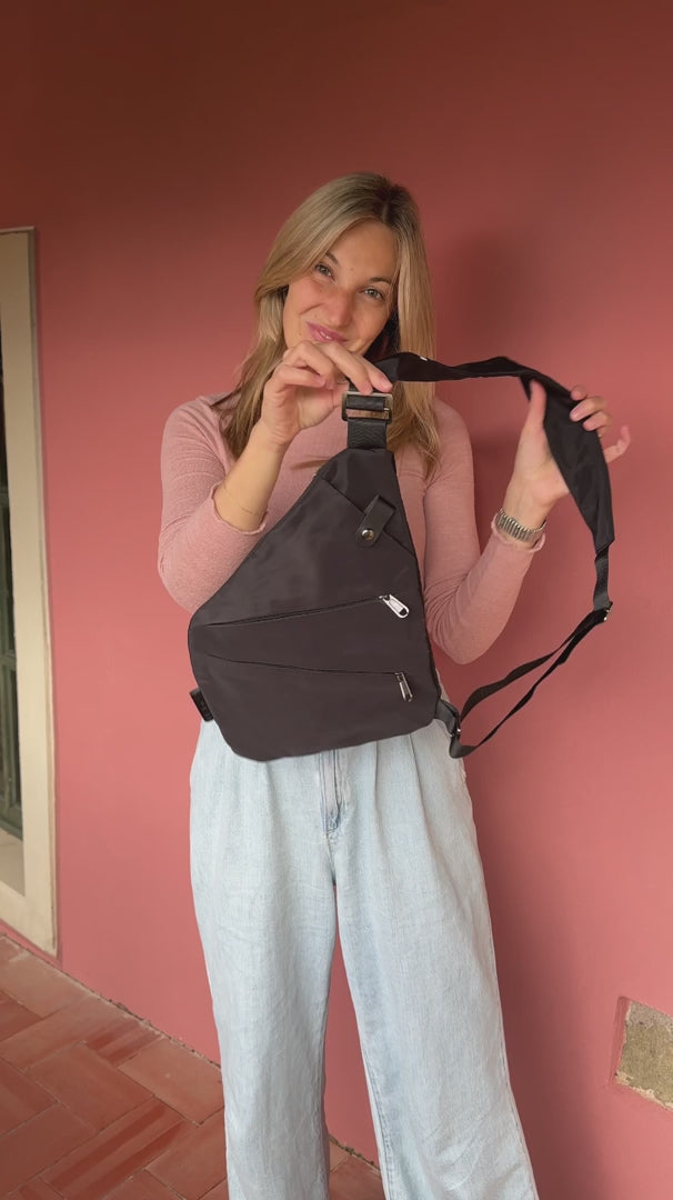 StrideSafe – Sicherheit durch schnittfestes Material. Die Tasche besteht aus schnittfestem Gewebe und verstärkten, schnittfesten Riemen. Verdeckte Reißverschlüsse und das unauffällige Design schützen deine Wertsachen unterwegs.